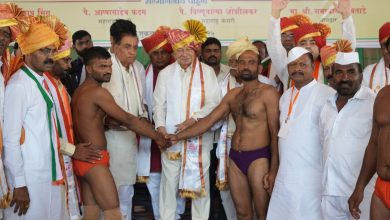 वारकरी कुस्ती स्पर्धा शुभारंभ प्रसंगी माजी केंद्रीय गृहमंत्री सुशीलकुमार शिंदे लातूर – “वारकरी सांप्रदायाच्या ठिकाणी टाळ मृदुंगाचाआवाज, तर मांडीवर थाप मारून…